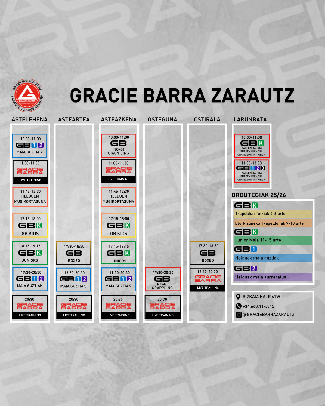 Gracie Barra Zarautz / HORARIO CURSO 25/26